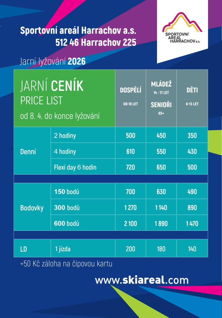 V příloze posíláme jarní ceník, platný od středy 8.4. Nákup běžných skipasů přes e-shop bude ukončen.
